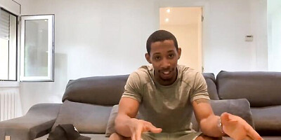 - Brunette darling takes care of stepbro's giant black cock