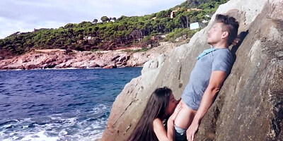 - Asian cutie is blowing a complete stranger at the beach